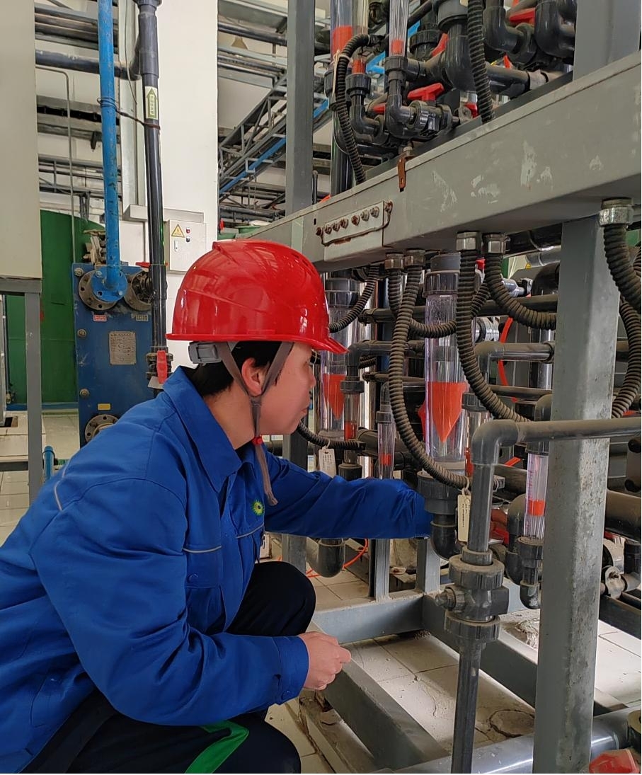 她是句容公司的一名化水值班员,凭借心细如发和吃苦耐劳精神被领导同事们所熟识。2023年12月,她在巡检过程中发现2#RO系统产水量持续出现下降趋势,爱钻研的她加班加点仔细寻找问题根源,对影响因素进行逐一排查,最终寻得产水量下降的主因,保障了项目的正常运行。