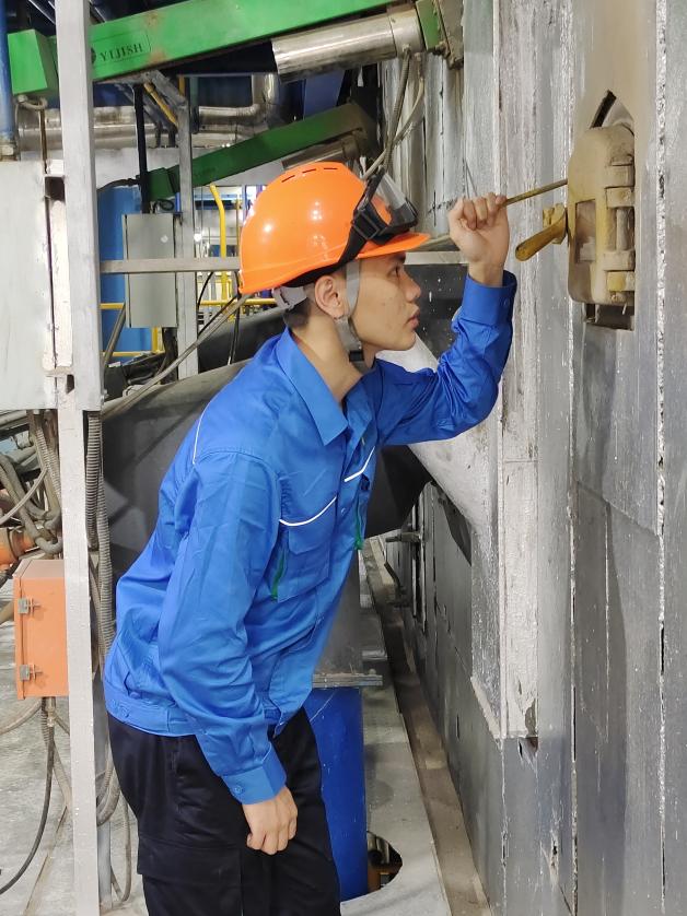 永嘉公司机务检修班,是一支敢打硬仗、能打胜仗的队伍,班组成员精诚合作、不畏困难,连续多年获得永嘉公司“先进集体”荣誉。每到炉子检修期间,锅炉炉膛里狭窄闷热且尘土飞扬,他们全副武装匍匐在炉排上中仔细检查、消缺,一修便是几个小时。他们用劳动托举梦想,靠着绿动人的信念和坚守一次次完成任务,立足岗位以先锋的担当和冲锋的姿态为项目的安全稳定生产保驾护航。