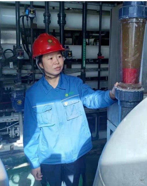 随着扩建项目的投产,车间工作任务愈发复杂繁重。面对渗滤液处理工艺的进一步提升、渗透膜出水要求达到回用标准等新工作,她一门心思扎在车间,默默为公司事业尽心尽力;面对渗沥液班组全部是零基础的新员工,她总是亲力亲为、不厌其烦地指导,对于工作态度不积极的学员予以思想教育正确引导。在她的带领下,班员心齐劲足,责任感强,学员短时间从污水小白到很快胜任岗位工作,保障了渗滤液能够安全达标处理。她总在朴实无华的工作岗位上尽职尽责,用她满腔的热血书写着自己不平凡的人生轨迹。